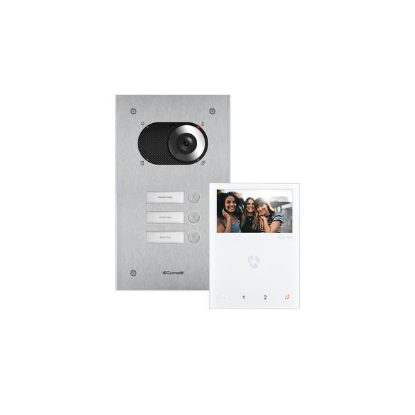 Dreifamilienhauskit Switch mit 1x Mini Handsfree, SB2. Dieses Kit ist im Auslieferungszustand komplett voradressiert und muss lediglich installiert und elektrisch angeschlossen werden. Es können maximal 4 Innenstationen Audio oder Video im Master / Slave Modus pro Teilnehmer installiert werden. Dieses Kit besteht aus: 1x Frontplatte Switch Art. IX0103, 1x UP-Gehäuse Art. IX9150, 1x Lautsprecher Video Art. 4681/4, 1x Netzgerät Art. 1210A, 1x Innenstation Video Mini HF Art. 6721W, 1x Abzweigklemme Art. 1214/2C und 1x Abschlusswiderstand Art. 1216.