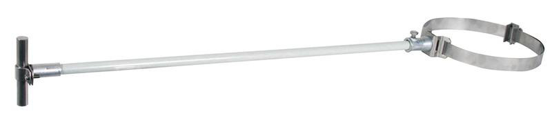 Distanzhalter für Fangstangen zur Einhaltung des Trennungsabstandes nach DIN EN 62305-3 (VDE 0185-305-3). Distanzstab aus glasfaserverstärktem Kunststoff (GFK) D16 mm, UV-stabilisiert, Farbe lichtgrau, Materialfaktor km= 0,7. Ausführung mit Stangenhalter (feste Leitungsführung) und Bandrohrschelle (Klemmbereich D50-300 mm).