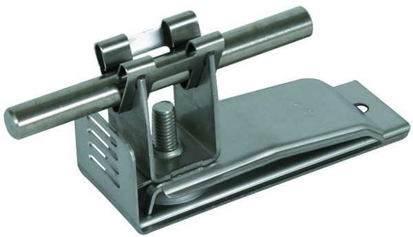 | Kurzbeschreibung | Dachleitungshalter f. Dach-Wandplatten Klemmbereich 2-8mm f. Rd 8mm NIRO |