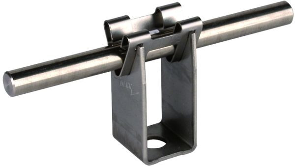 Leitungshalter DEHNgrip zum Verlegen von Runddrähten. Schraubenloses NIRO-Haltersystem mit einfacher Montage (Eindrücken von oben) mit loser Leitungsführung. Ausführung mit Bauhöhe 32 mm.