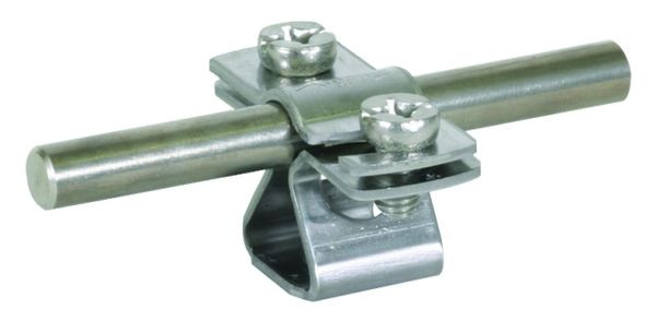 Leitungshalter DEHNhold mit geschlitztem Überleger, zum Befestigen von Rundleitern. Einsetzbar für verschiedene Werkstoffe z. B. Al, NIRO, St/tZn und Cu, feste Leitungsführung. Ausführung mit Innengwinde.