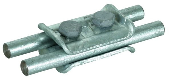 Parallelverbinder nach DIN EN 62561-1, zum Verbinden von zwei Leitern in Parallelanordnung. Ausführung für gleiche Durchmesser mit zwei Schrauben.