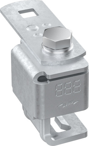 Anschlussklemme mit Klinge für Stahlträger nach DIN EN 62561-1, für den Anschluss an Stahlkonstruktionen. Ausführung mit Anschlusslasche.
