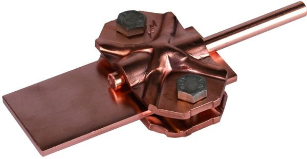 Verbindungs- / Trennklemme nach DIN EN 62561-1, zum Verbinden der Ableitung mit den Erdeinführung. Ausführung zweiteilig, für Rund- und Flachleiter (Breite bis 40 mm).