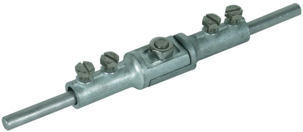 Trennklemme nach DIN EN 62561-1, mit Verbindungsschraube M8. Ausführung für zwei Rundleiter, mit Schrauben M6.