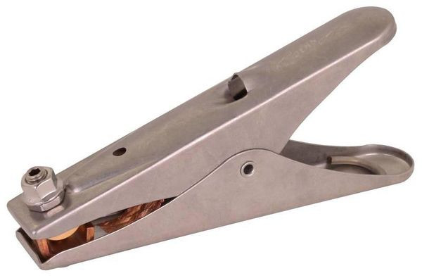 Erdungszange zur kontrollierten Erdung / ableiten statischer Aufladung von Tankwagen, Flugzeugen, Containern und Behältern. Auch für die Anwendung in explosionsgefährdeten Bereichen geeignet. Ausführung groß, zwei Messingbacke mit Stahlspitzen. Anschluss: Gewindebolzen M10 mit Mutter.