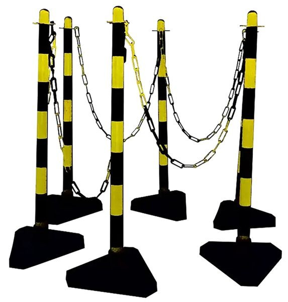 Kettenständer-Set (gelb/schwarz) mit Zementfuß, zum Absperren der Arbeitsstätte. Geeignet für Innenanlagen und den kurzfristigen Außeneinsatz.