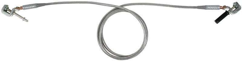 Einpolige Erdungs- und Kurzschließvorrichtung nach DIN VDE 0683-100 (EN/IEC 61230) für Umspanner an Oberleitungsmasten elektrischer Bahnen, 4 m lang, mit Universalklemmen, Spindel mit Querstift und Handgriff.