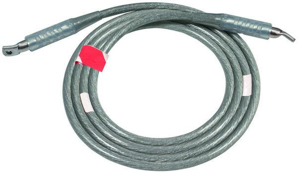 Einpoliges Erdungs- und Kurzschließseil, ohne Bestückung, mit rot-weißen Markierungsfähnchen und Bohrung im Anschlusslappen D = 10,5 mm, Ausführung PK2 ohne Aussparung am Kabelschuh.