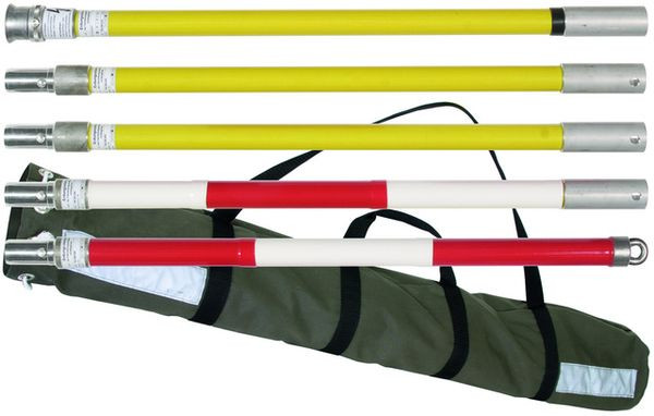Erdungsstangenset, 6-teilig (PKW-Ausführung) mit Bajonettverriegelung, max. Gesamtlänge 4855 mm und höchstzulässige Kopflast l max / l min: 10 /35 kg.