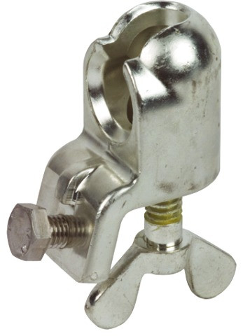 Kugelkopfhaube starr mit Flügelschraube als erdseitiges Anschlusselement nach DIN VDE 0683-100 (EN/IEC 61230) für Kugelfestpunkte zur erdseitigen Bestückung von Erdungs- und Kurzschließseilen. Mit Verdrehungsschutz Ausführung PK 1.