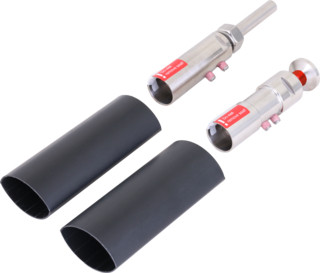 Anschlusselemente zum Abschließen der HVI long Leitung an beiden Enden, beim Erstellen des Endverschlusses der Leitung im Stützrohr (Kopfstück) und Anschlusselement zum Anschließen an andere Teile des äußeren Blitzschutzes oder der Erdungsanlage (inkl. zwei Schrumpfschläuche).