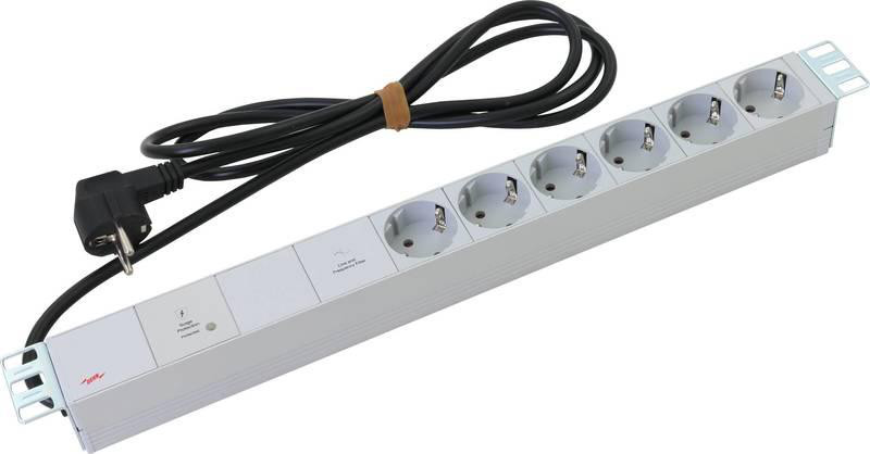 Steckdosenleiste mit Überspannungsschutz und Netzfilter für Datenschränke 482,6 mm (19 Zoll),?Überspannungsschutz mit Überwachungseinrichtung und Abtrennvorrichtung,?Entstörfilter,?Optische Funktionsanzeige (grün) und optische Defektanzeige (rot)