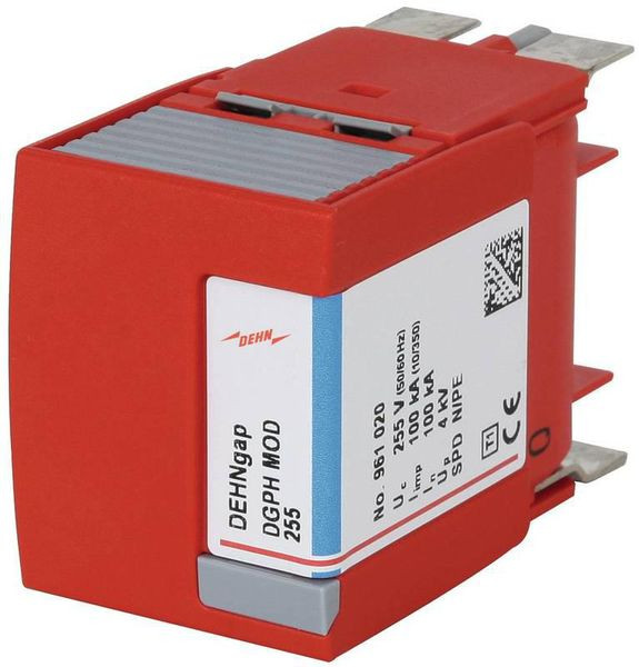 Schutzmodul für DEHNgap modular, Typ 1 nach EN 61643-11 auf Funkenstreckenbasis.