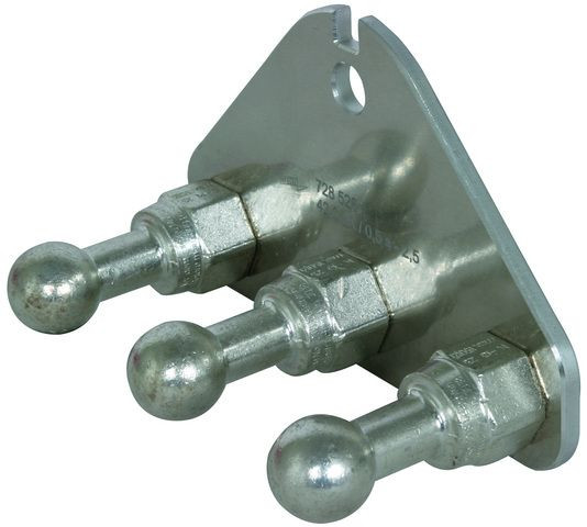 Erdanschlussplatte zur Montage auf Erdanschlussklemme mit Verdrehungsschutz PK1 und mit 3 Kugelfestpunkten als Anschließstelle nach DIN VDE 0683-100 (EN/IEC 61230). Einfacher Anschluss der Phasenäste einpolig. Hohe Kurzschlussstromträgfähigkeit.