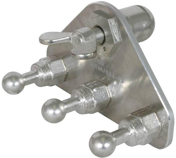 Erdanschlussplatte mit Kugelkopfhaube und 3 Kugelfestpunkten als Anschließstelle nach DIN VDE 0683-100 (EN/IEC 61230). Einfacher Anschluss der Phasenäste einpolig. Hohe Kurzschlussstromtragfähigkeit.