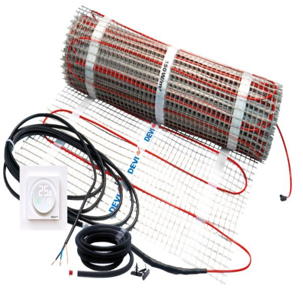 | Kurzbeschreibung | Dünnbett-Set 150W/m², 1m², 0,5 x 2m, 150W, mit Devireg Display Connect |