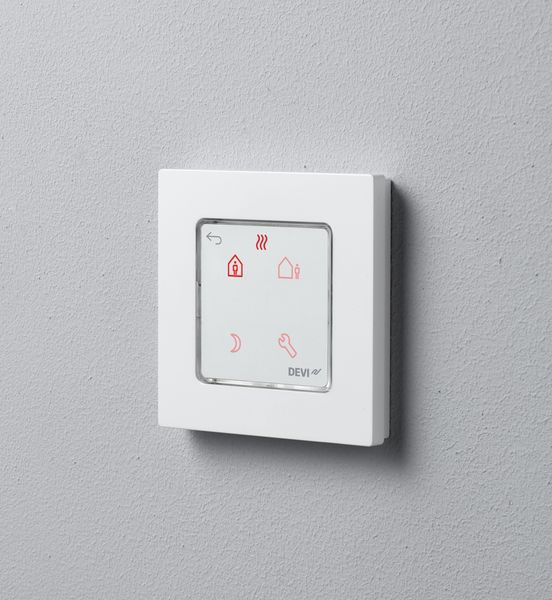 Raumtehrmostat für Warmwasser-Heizung programmierbar, mit Touch Display. Anzeige im Display erlischt nach 10 sek automatisch. 7 vordefinierte Heizprogramme, Temperaturbereich: 5 bis 35° C, Frostschutzeinstellung = 5° C. Umgebungstemperatur, Lagerung: -20 bis 60° C. Umgebungstemperatur, Betrieb: 0 bis + 40° C. Regler, Typ: Pulsweiten Modulation. Max. Dauerlast (Ausgang): < 50 mA/10 W (= 5 Danfoss TWA-Stellantriebe). Max. Einschaltstrom (Stellantrieb): 3 A = 100 ms. Leistungsaufnahme: 0,2 W. Spannungsversorgung (ohne Stellantriebe): 220 bis 240 V, 50/60 Hz. Raumfühler 47 kO, NTC. Gehäusematerial Weiße Teile: PC ASA. Graue Teile: PC, 10 % Glas. IP und Schutzart IP: 21 Schutzklasse: II. Zulassung: CE, RohS, WEEE. Farbe Weiß RAL9010/Dunkelgrau RAL7024. Maße: 80 x 80 x 11 mm. Nicht für elektrische Fußbodenheizung geeignet. Passt in viele der gängigsten Schalterrahmen.