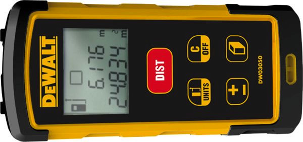 DW03050 Laser-Distanzmesser Sehr robuster Laser-Distanzmesser, besteht Falltest von mindestens 2 m und verfügt über Teilgummierung, Reichweite von bis zu 50 m mit einer Abweichung von max. +/- 1,5 mm auf 10 m, optimale Endnutzer-Funktionen wie: Längenmessung, Flächen- und Volumenmessung; Addieren und Subtrahieren der Messungen sowohl in Meter als auch in INCH, Absteckfunktion: Kontinuierliche Messungen ermöglichen es definierte Längen abzutragen, Höhenmessung: Mit der Pythagoras-Berechnung misst der LDM kombinierte Höhen von Wänden sowohl über als auch unter der Horizontalen Lieferumfang: 2 x 1,5 Volt LR03 (AAA) Batterien, Schutzetui