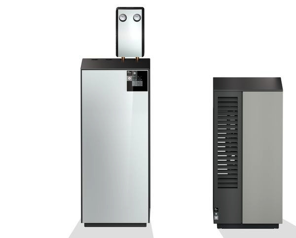 Heizungs-Wärmepumpe zum Heizen und Kühlen mit Inverter-Regelung bestehend aus einer innen aufgestellten Hydraulikeinheit und einem Außenmodul, die über eine Last-, Kommunikations- und Kältemittelleitung (Sonderzubehör) verbunden werden. Die Regelung passt über einen Inverter die Wärmepumpenleistung an den tatsächlichen Heiz- bzw. Warmwasserbedarf an. Radikal kleine Außeneinheit mit seitlichem Luftausblas zur wandnahen Aufstellung (0,5 m Wandabstand) und langsam laufendem, natürlich leisem EC-Eulenflügel-Ventilator. In der Hydraulikeinheit sind die folgenden Komponenten integriert und betriebsfertig verdrahtet: Integrierte Netzwerkverbindung zur optionalen Steuerung über Smart Device Master-Unit mit einfacher Bedienung über Touch-Display Pufferspeicher und doppelt differenzdruckloser Verteiler für störungsfreien Betrieb Rohrheizung, elektrisch umschaltbar, mit 2,4 oder 6 kW zur optionalen Unterstützung im Heizbetrieb Hocheffizienz-Umwälzpumpe für den Erzeuger- und Verbraucherkreis (EEl ? 0,2) Ausdehnungsgefäß mit 24 l und Sicherheitsventil Schmutzfänger, Durchfluss- und Drucksensor sowie Vor- und Rücklauffühler Außenfühler (Norm NTC-2) im Lieferumfang Optionale Erweiterungsmöglichkeiten: Nebenstehender Design-Warmwasserspeicher mit 220 l (XL) oder 355 l (XXL) Bivalenter Betrieb in Verbindung mit einem fossilen Wärmeerzeuger Regenerativer Betrieb (z. B. Holz oder Solarthermie) zusätzlicher Heizkreis