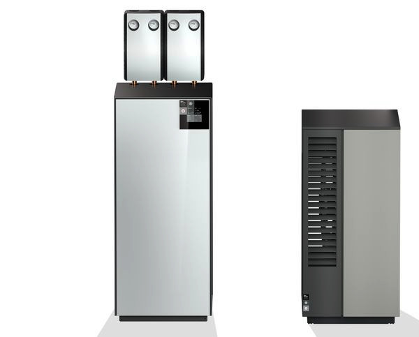 Heizungs-Wärmepumpe zum Heizen mit Inverter-Regelung bestehend aus einer innen aufgestellten Hydraulikeinheit und einem Außenmodul, die über eine Last-, Kommunikations- und Kältemittelleitung (Sonderzubehör) verbunden werden. Die Regelung passt über einen Inverter die Wärmepumpenleistung an den tatsächlichen Heiz- bzw. Warmwasserbedarf an. Radikal kleine Außeneinheit mit seitlichem Luftausblas zur wandnahen Aufstellung (0,5 m Wandabstand) und langsam laufendem, natürlich leisem EC-Eulenflügel-Ventilator. In der Hydraulikeinheit sind die folgenden Komponenten integriert und betriebsfertig verdrahtet: Integrierte Netzwerkverbindung zur optionalen Steuerung über Smart Device Master-Unit mit einfacher Bedienung über Touch-Display Pufferspeicher und doppelt differenzdruckloser Verteiler für störungsfreien Betrieb Rohrheizung, elektrisch umschaltbar, mit 2,4 oder 6 kW zur optionalen Unterstützung im Heizbetrieb Hocheffizienz-Umwälzpumpe für den Erzeuger- und Verbraucherkreis (EEl ? 0,2) Ausdehnungsgefäß mit 24 l und Sicherheitsventil Schmutzfänger, Durchfluss- und Drucksensor sowie Vor- und Rücklauffühler Außenfühler (Norm NTC-2) im Lieferumfang Optionale Erweiterungsmöglichkeiten: Nebenstehender Design-Warmwasserspeicher mit 220 l (XL) oder 355 l (XXL) Bivalenter Betrieb in Verbindung mit einem fossilen Wärmeerzeuger Regenerativer Betrieb (z. B. Holz oder Solarthermie) zusätzlicher Heizkreis