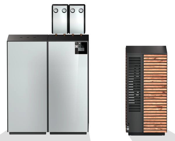 Heizungs-Wärmepumpe zum Heizen mit Inverter-Regelung bestehend aus einer innen aufgestellten Hydraulikeinheit und einem Außenmodul, die über eine Last-, Kommunikations- und Kältemittelleitung (Sonderzubehör) verbunden werden. Die Regelung passt über einen Inverter die Wärmepumpenleistung an den tatsächlichen Heiz- bzw. Warmwasserbedarf an. Radikal kleine Außeneinheit mit seitlichem Luftausblas zur wandnahen Aufstellung (0,5 m Wandabstand) und langsam laufendem, natürlich leisem EC-Eulenflügel-Ventilator. In der Hydraulikeinheit sind die folgenden Komponenten integriert und betriebsfertig verdrahtet: Integrierte Netzwerkverbindung zur optionalen Steuerung über Smart Device Master-Unit mit einfacher Bedienung über Touch-Display Pufferspeicher und doppelt differenzdruckloser Verteiler für störungsfreien Betrieb Rohrheizung, elektrisch umschaltbar, mit 2,4 oder 6 kW zur optionalen Unterstützung im Heizbetrieb Hocheffizienz-Umwälzpumpe für den Erzeuger- und Verbraucherkreis (EEl ? 0,2) Ausdehnungsgefäß mit 24 l und Sicherheitsventil Schmutzfänger, Durchfluss- und Drucksensor sowie Vor- und Rücklauffühler Außenfühler (Norm NTC-2) im Lieferumfang Optionale Erweiterungsmöglichkeiten: Nebenstehender Design-Warmwasserspeicher mit 220 l (XL) oder 355 l (XXL) Bivalenter Betrieb in Verbindung mit einem fossilen Wärmeerzeuger Regenerativer Betrieb (z. B. Holz oder Solarthermie) zusätzlicher Heizkreis