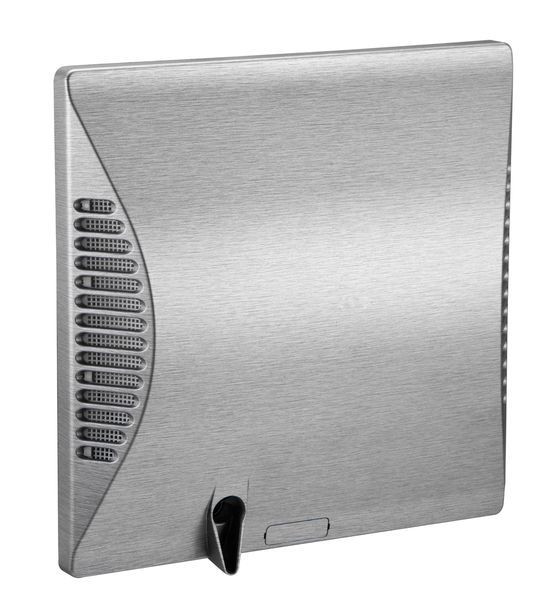 Außenwandblende aus Kunststoff mit witterungs- und UV-beständiger Beschichtung im Edelstahl-Design. Optionales Zubehör für Wandhülse.