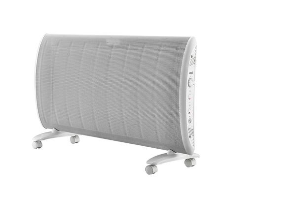 Wärmewellenheizgerät mit mechanischem Thermostat, Aufstellung freistehend oder auf Rollen, Mecanitheizplatte, Frostschutzfunktion, Überhitzungsschutz und Kontroll-Leuchte für Heizbetrieb, Farbe weiß, Spritzwasserschutz IP 24, BEAB Prüfzeichen. 3 Leistungsstufen mit 0,75/1,25/2,0 kW. Dieses Produkt ist nur für gut isolierte Räume oder für den gelegentlichen Gebrauch geeignet.