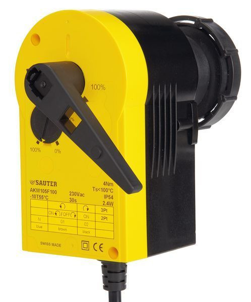 Stellmotor für 3-Wege-Kugelhähne DWK, 2/3-Punkt-Stellsignal, ~230 V, 50 Hz für Umschaltzeiten von 120 s (Drehwinkel 90 °) bei 50 Hz. Lieferung inklusive Kabel, Länge 1m.