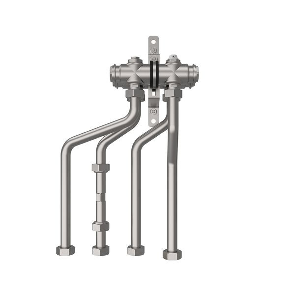 Das Erweiterungsmodul 4-Leiter für die Wohnungs- und Trinkwasserstation TWES erhöht die Flexibilität und eine effizientere Nutzung der Wärmeverteilung im Gebäude, da die Wärmeversorgung für Heizung/Kühlung und Warmwasser unabhängig in zwei Stränge aufgeteilt wird, beispielsweise bei der Kombination von zwei Systemtemperaturen für Warmwasser und Niedertemperaturheizsystemen. Dieses lässt sich mit der Trinkwasserstation TWES und weiteren Modulen wie Anschlussschiene, Verteiler, Elektrozubehör und Einbauschrank zu einer kompletten Wohnungsübergabestation erweitern. Verrohrung komplett aus Edelstahl mit Fühlerhülse im Vorlauf und Wärmezählereinbauplatz (G 3/4“ AG, Länge 110 mm) im Rücklauf. Max. Betriebstemperatur 75 °C, max. Betriebsdruck 10 bar. Lieferung inkl. Befestigungsschellen für die Montage im Verteilerschrank.
