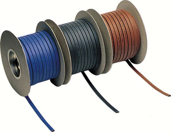 zum Frostschutz an Rohren, Dachrinnenbeheizung, Eisfreihaltung von Entwässerungsrinnen. Bestehend aus zwei parallelen verzinnten Kupferlitzen und einem dazwischenliegenden Kunststoff-Heizelement, Schutzumflechtung aus verzinntem Kupfer, UV-beständiger Außenmantel, VDE-Prüfzeichen