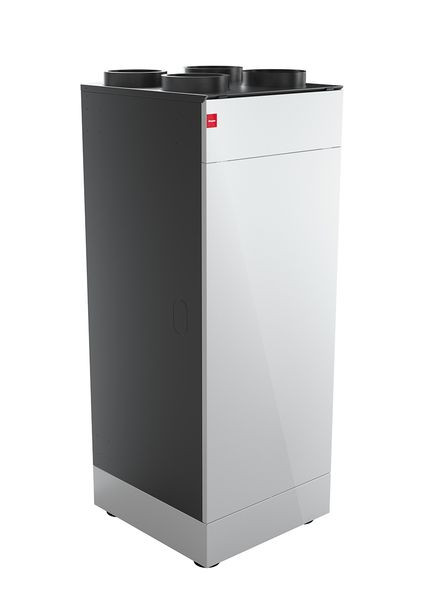 Wohnungslüftungsgerät mit Wärme- und Feuchterückgewinnung und Bypass zur kontrollierten Be- und Entlüftung von Wohnungen und Wohnhäusern mit einem zentralen Luftverteilsystem. Optimal geeignet für Neubau und Sanierungsmaßnahmen. Effiziente, konstantvolumenstromgeregelte EC-Ventilatoren mit Strömungsoptimierung. Wärme- und Feuchterückgewinnung aus der Abluft mit hocheffizientem Enthalpie-Kreuzgegenstrom-Wärmetauscher. Automatischer Sommer-Bypass mit einstellbarer Schalttemperatur zur Nutzung kühler Nachtluft im Sommer durch Unterbrechung der Wärmerückgewinnung. Serienmäßig integrierte Feuerstätten-Sicherheitsfunktion für einen gemeinsamen Betrieb mit Feuerstätten und für erhöhten Komfort durch balancierte Luftmengen. Integriertes Bedientableau am Gerät. Automatikbetrieb über Luftqualitätssensoren in Abluft und Außenluft und über Zeitprogramme möglich. Filter ePM 10 für Außenluft und Abluft. Filterwechselanzeige im Display des Lüftungsgerätes mit einstellbarem Filterintervall. Filterwechsel sehr leicht vom Nutzer durchführbar. Das Gehäuse des Gerätes besteht aus EPP mit Blechverkleidung. Zugänglichkeit und Wartungsabstand nur von vorne. Luftkanalanschlüsse auf der Geräteoberseite, bodenstehende, wandhängende oder in-Schrank-Montage. Der Kondensatwasseranschluss befindet sich an der Unterseite des Lüftungsgerätes. Das Lüftungsgerät ist ohne weiteres Zubehör funktionsfähig.