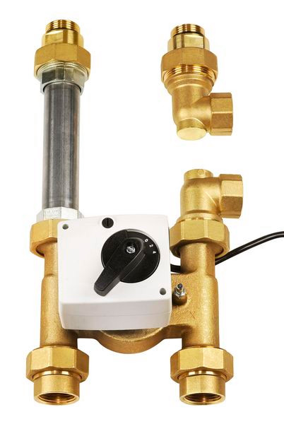 Kombinierbare Mischerbaugruppe zur Einbindung eines zweiten Wärmeerzeugers (z.B. Ölkessel) oder eines regenerativen Wärmeerzeugers mit Wärmespeicher. Bestehend aus einem 4-Wege-Mischer mit Stellmotor und 140 s Laufzeit. Temperaturfühler im Lieferumfang.