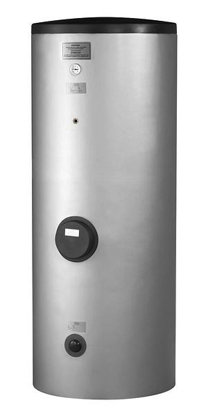 Stellflächenoptimierter Standspeicher bestehend aus einem Pufferspeicher 100 l und einem 300 l Warmwasserspeicher. Beide Speicher sind hydraulisch entkoppelt; Pufferspeicher mit Muffe 1 ½" für Tauchheizkörper (bis CTHK 635), Anschluss Heizung 1 ¼ "; Warmwasserspeicher Nutzinhalt 277 l, Tauscherfläche 3,2 m² Glattrohr (innenliegend), spezialemailliert, Anschluss Heizung 1¼ ", Anschluss Warmwasser 1", Anschluss Zirkulation ¾", Wärmeverluste 3,0 kWh/24h (bei 20 °C Raum- und 65 °C Speichertemperatur), Temperaturfühler beiliegend, Einbaumöglichkeit für Flanschheizung; Farbe weißaluminium.