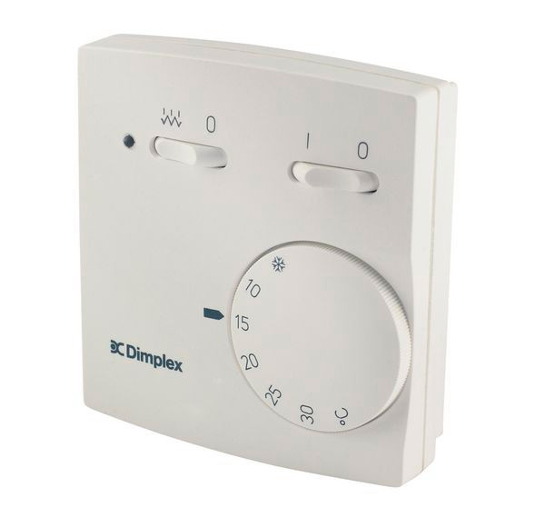 Zweipunkt-Regler (Bimetall) mit thermischer Rückführung, Schaltleistung 230 V / 10 (4) A, IP 30, Regelbereich 5 °C bis 30 °C, Farbe alpinweiß, im Gehäusedeckel integrierte Temperaturbereichs-Einengung, AP-Montage, 2 Schalter (EIN/AUS, Zusatzheizung) und 2 Kontroll-Lampen (EIN/AUS, Zusatzheizung).