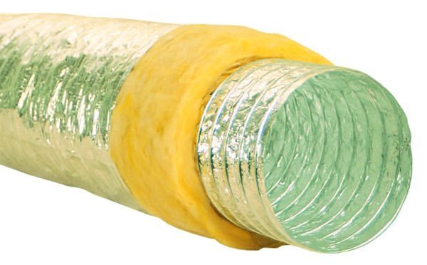 Flexibler runder Aluminium-Lüftungsschlauch mit 50 mm Wärmedämmung (Länge 10m) Außendurchmesser = Nennweite + 100 mm.