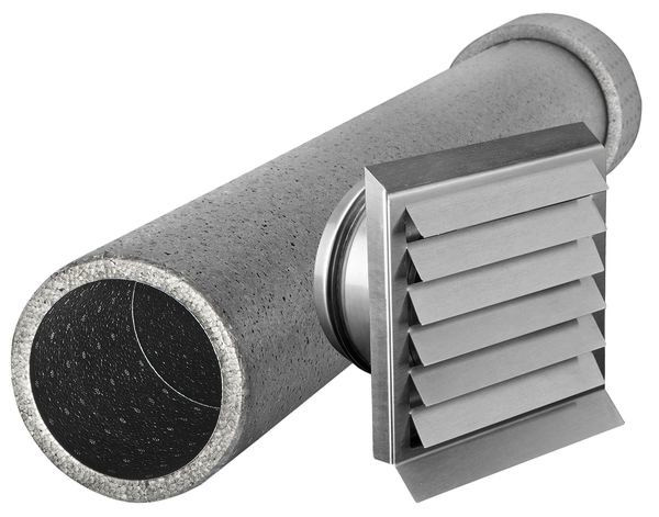 Fortluft-Paket über die Außenwand durch ein Lüftungsgitter mit Mauerkasten