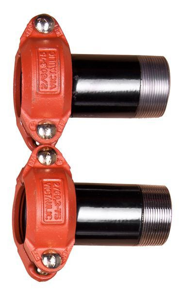 2 Stück Victaulic-Anschlussverschraubung für Module DN 50; Nut x Gewinde 2” - Schelle und Übergang Gewinde R 2 ”AG x Nut 60,3 für Module WWM 50 und MMH 50 bzw. DDV 50 und Verteilerbalken VTB 50.