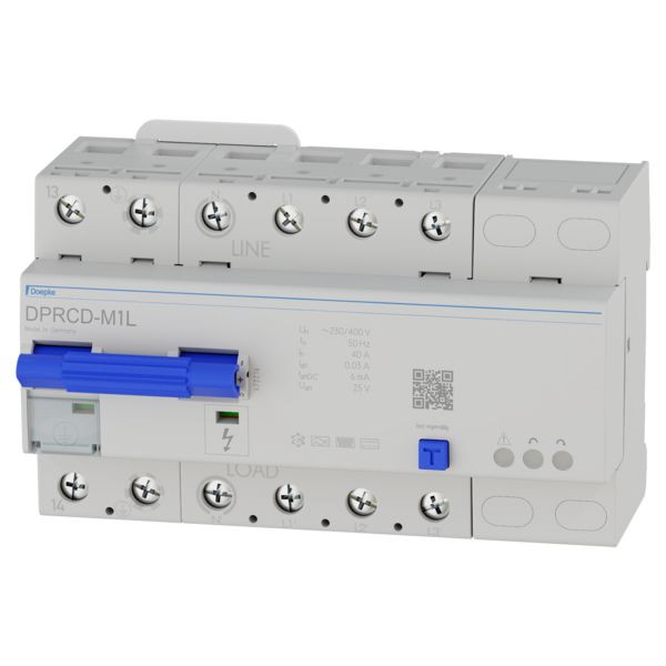 PRCD (Portable Residual Current Devices) sind ortsveränderliche Fehlerstromschutzeinrichtungen, die für den zusätzlichen Schutz an vorhandenen Elektroinstallationen mit unbekannter oder unzureichender Schutzmaßnahme verwendet werden. Sie kombinieren Fehlerstromschutz, Unterspannungsauslösung und Neutralleiterüberwachung. Mit geschaltetem Schutzleiter bieten sie zudem eine Schutzleiterüberwachung. Geräte der Baureihe DPRCD-M sind Basiskomponenten zur Herstellung einer dreiphasigen Personenschutzeinrichtung PRCD. Sie eignen sich zur Hutschienenmontage und sind kompatibel mit den Gehäusen namhafter Hersteller. Auf nur 8 TE kombinieren die Geräte eine allstromsensitive Fehlerstromschutzeinrichtung mit einer Netzleiter- und Schutzleiterüberwachung. Durch eine 6-mA-DC-Erkennung sichert das Gerät zudem die Schutzfunktion vorgeschalteter Fehlerstromschutzschalter. DPRCD-M sind allstromsensitiv bei Fehlerströmen ab 0 Hz. Sie sind erhöht stoßstrom- und gewitterfest. Produkte der Variante MxL ohne Linksdrehfeldverriegelung ermöglichen das Einschalten des Geräts auch bei Anliegen eines Linksdrehfeldes.