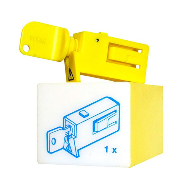 | Kurzbeschreibung | Tytan Wiedereinschaltsperre Kunststoffschloss, gelb |