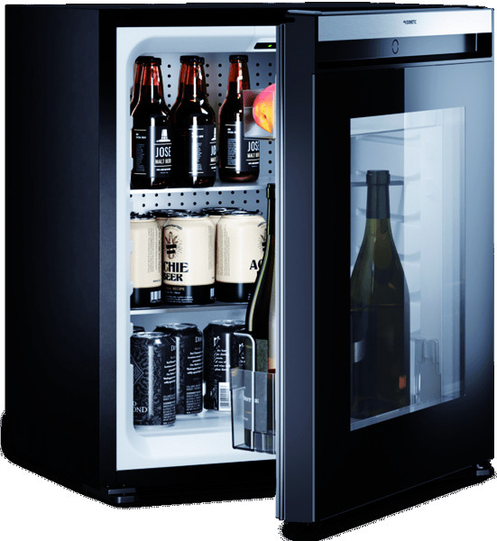 Hochleistungs-Kompressortechnologie für hervorragende Kühlleistung, Bedienpanel mit Status-LED, LED-Innenbeleuchtung, höhenverstellbare (7 Stufen) Glaseinlegeböden, untere Türablage mit Zierleiste - für 1,5-l-Flaschen oder Wein- und Sektflaschen, Schloss nachrüstbar, Glastür mit Dometic-Zierleiste, rechtsseitiges Scharnier