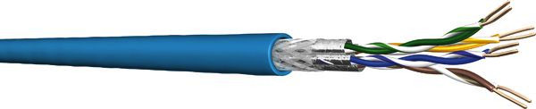 Cat. 7 Draka Installationskabel für den Innenbereich UC400 HS23 Cat.6 S/FTP 4P LSHF Eca Kupfer-Datenkabel der Kat.6 für die strukturierte Verkabelung mit einer Bandbreite von 400 MHz. Mit Folienpaarschirmung und hochwertiger Geflechtsabdeckung ist das Kabel doppelt geschirmt. Das 4-paarige Simplex Installationskabel mit 8 Kupferadern AWG23 ist für den Anschluss von Dosen, Patchfeldern und Modulen, auch mit LSA-Technik, zur Verlegung in Gebäuden, im Kanal und Unterputz geeignet das Produkt übertrifft die Anforderungen nach EN50173-1; EN50288-5-1, ISO/IEC11801; IEC61156-5 und IEEE802.3 af/at/bt. Der Mantel ist aus halogenfreiem, flammwidrigem Material nach IEC60332-1; IEC60754-2; IEC61034; EN50399 und Eurobrandklasse Eca. Die Schirmung erfüllt mit einer Kopplungsdämpfung von 80 dB die Trennklasse D nach EN50174.Das Kabel ist zukunftssicher für alle Anwendungen nach Klasse C, D, und E und geeignet zum Betrieb von PoE und PoE+ über eine Channellänge bis 100m. Es ist geeignet für folgende Übertragungen: Telefonie, Ethernet, Fast Ethernet und Gigabit Ethernet, 10BaseT, 100BaseT, 1000BaseT, 1GBase-T oder bis zu 1.000 MBit/s.