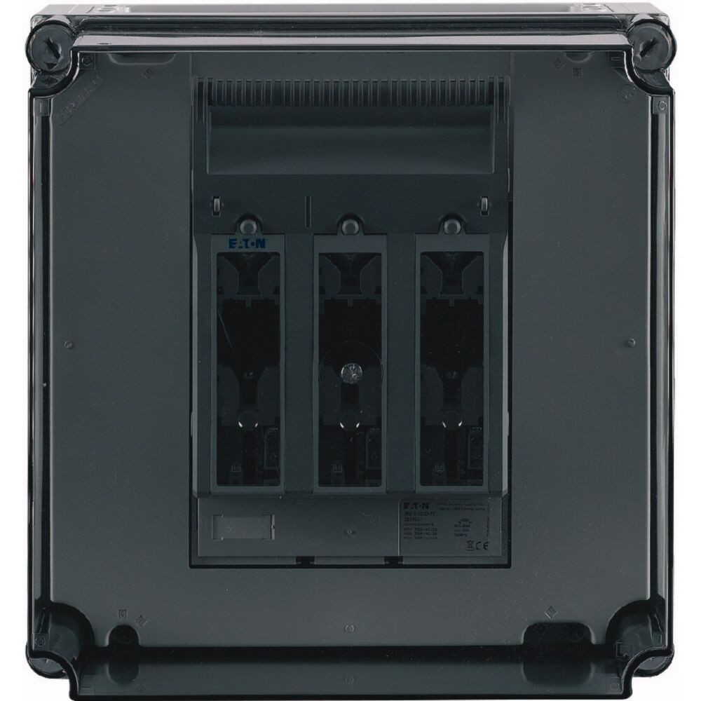 NH-Verteilerschrank mit transparentem Deckel, 1x Schaltanlage NH1 auf Sammelschienensystem 250 A, 3-polig, Träger inklusive für N+PE zum Nachrüsten, mit Kupferschienen L1/L2/L3: 20 x 5 mm, N: ohne, PE: ohne, ohne Klemmen