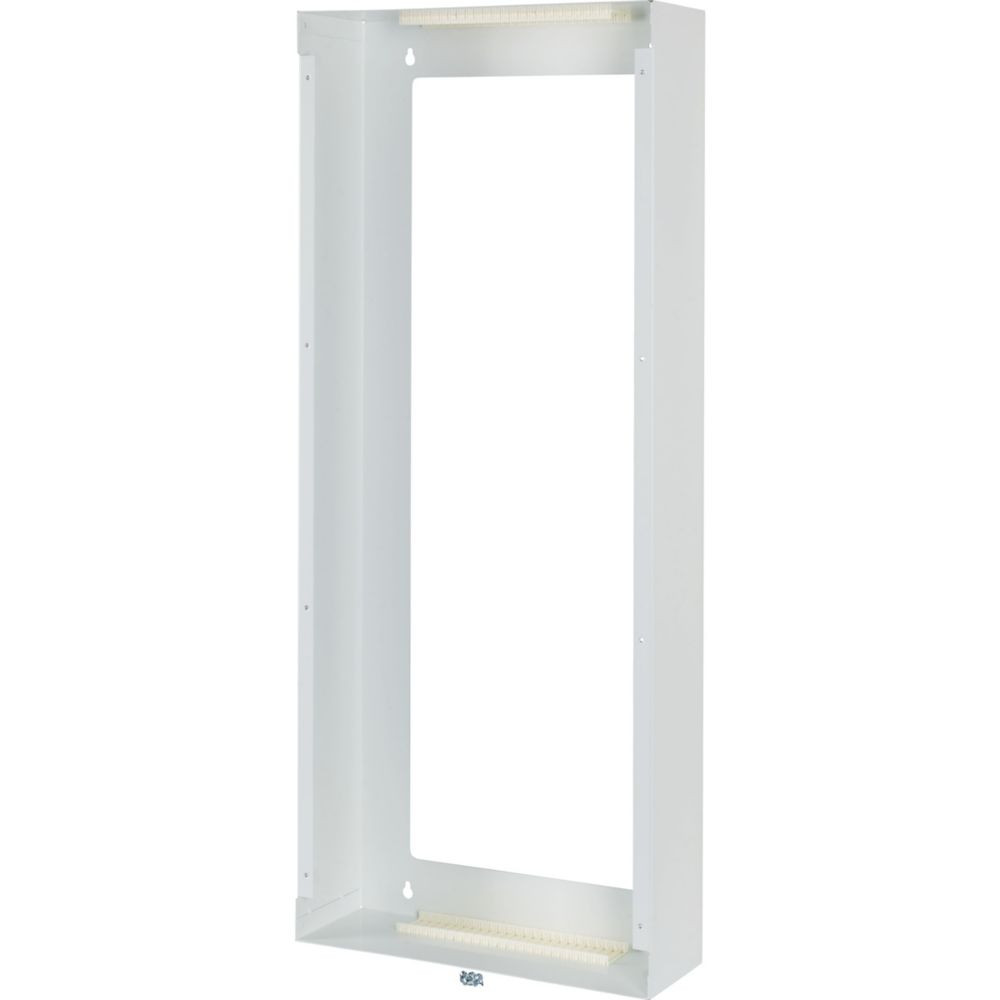 Aufputzwanne für einen flachen oder superflachen 5-reihigen KLV, mit Montagematerial für KLV, Stahlblechwanne, pulverbeschichtet, RAL 9016, Großzügiger Kabeleinlass hinten, oben und unten Kabeleinlass. Geeignet z. B. für 1 x KLV-60UPP-F oder 1 x KLV-60UPM-F.