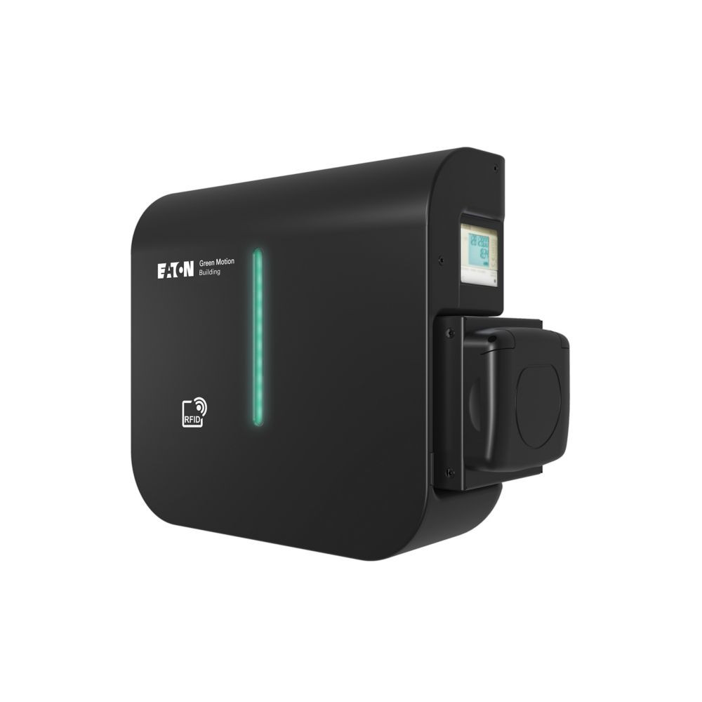 Eaton Green Motion Building, EV-Ladestation, Online, Einstellbare Ausgangsleistung 3,7 kW bis 22 kW (einphasig oder 3-phasig), Typ-2-Ladekabel mit Berührungsschutz, 4G, RFID, MID-Stromzähler