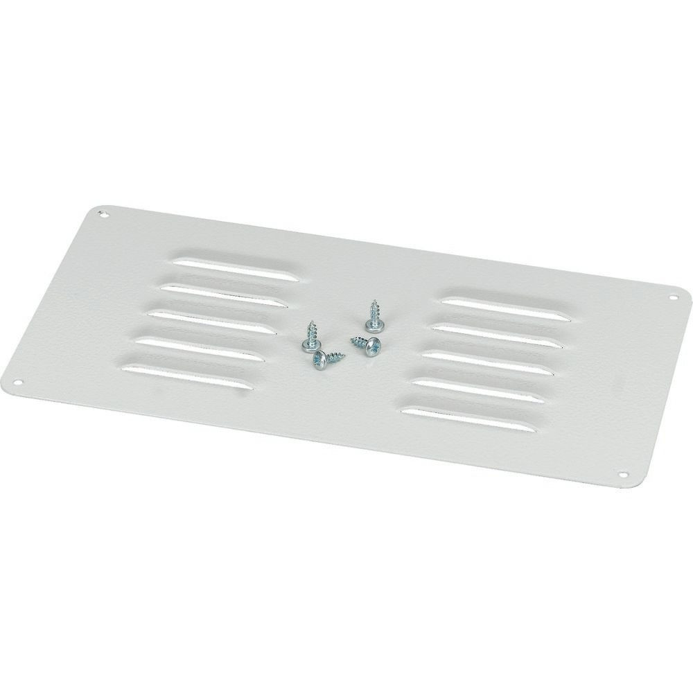 Belüftete Platten, horizontale Anordnung der Lüftungsschlitze, pulverbeschichteter Stahlblech-Rahmen RAL7035, Lieferung mit Befestigungsmaterial