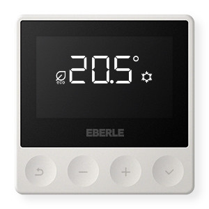 Digitaler Aufputz-Raumregler mit sehr geringer Aufbauhöhe von nur 21 mm für Wandbefestigung. Aktivweiß glänzend. Mit Triac-Ausgang. Geeignet für wassergeführte Heizsysteme. Sehr grosses schwarzes Display mit Hinterleuchtung. Textanzeige zur selbsterklärenden Bedienung. Universal-Eingang zur Heizen/Kühlen Umschaltung, Absenkung oder Präsenz wählbar. Kurzzeit-Timer (Eco-/Party-Modus) für stundenweise Änderung der Temperatur. Frostschutz. Temperaturanzeige an lokale Verhältnisse anpassbar. Unbefugtensicherung. Reglerverfahren PWM oder 2-Punkt. Aufputzmontage oder direkt auf UP-Dose mit waage-/senkrechten Befestigungslöchern.