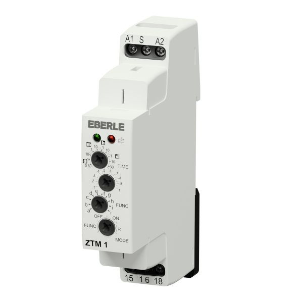 Multifunktionszeitrelais aus der Typenreihe ZT-Line. 11 Funktionen, 10 Zeitbereiche. Die Einstellung der Funktions- und Zeitbereichsauswahl erfolgt frontseitig durch Drehschalter. Die Anzeigen für den Zeitablauf, Schaltzustand und Betriebsspannung ermöglichen eine ständige Kontrolle über den Funktionszustand.