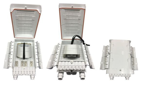 Kurzbeschreibung FTTH IP65 Anschlussbox für 96 Fasern und Faserüberlängenaufnahme