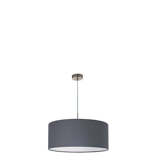 Die Pendelleuchte PASTERI ist aus einem runden grauen Textilschirm gefertigt, der mit einer nickel-matten Metall-Abhängung kombiniert wurde. Die Pendelleuchte im zeitlosen Design fügt sich nahtlos in minimalistische und moderne Einrichtungen ein. Sie bietet mit ihrem Durchmesser von 53 cm eine wohnliche Beleuchtung für jeden Raum – egal ob im Wohnzimmer oder im Esszimmer beispielsweise über einem länglichen Esstisch. Das Leuchtmittel ist nicht im Lieferumfang enthalten. Geeignet ist die Leuchte für jedes Leuchtmittel mit E27-Sockel.